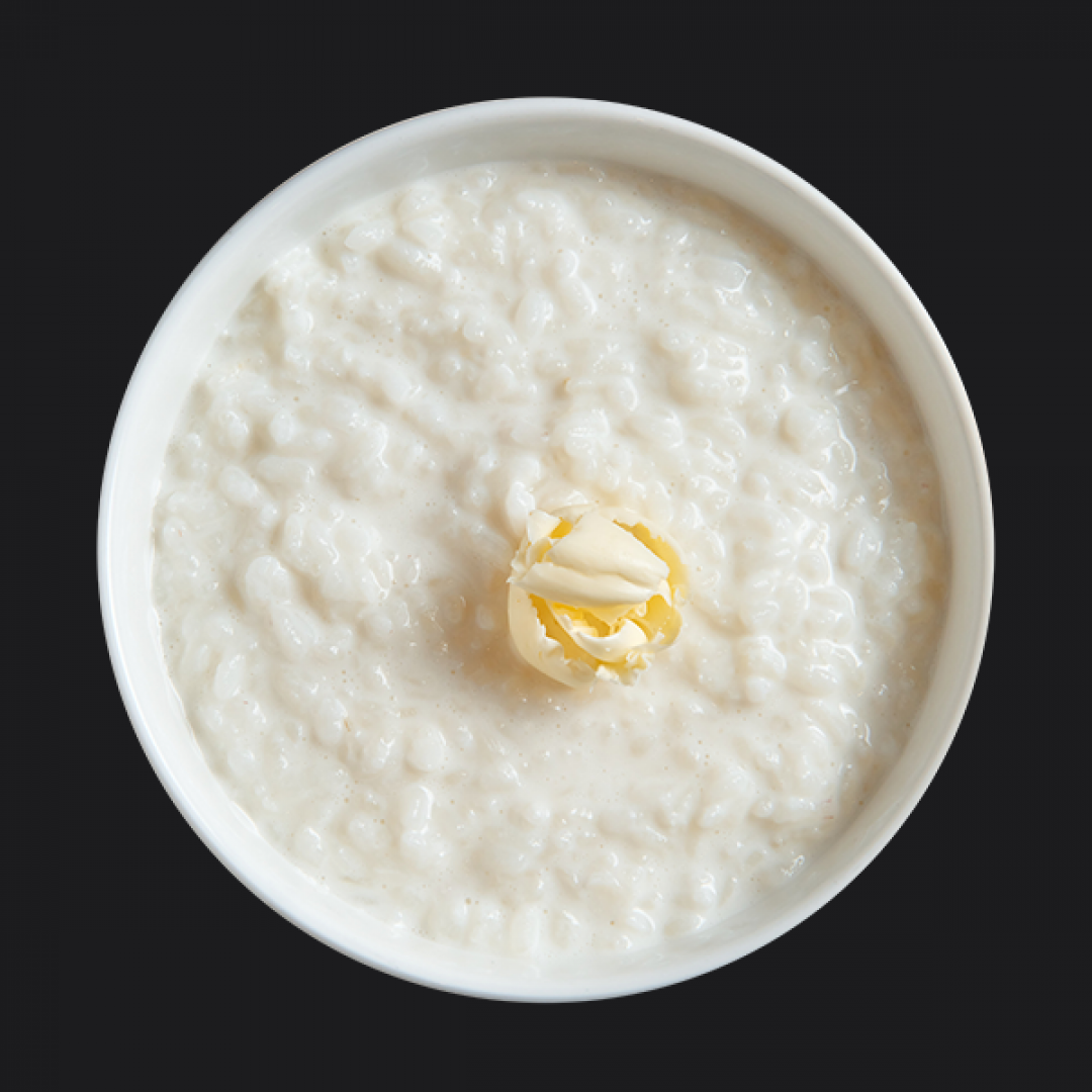 Каша рисовая, манго, сливочное масло, фисташки, молоко