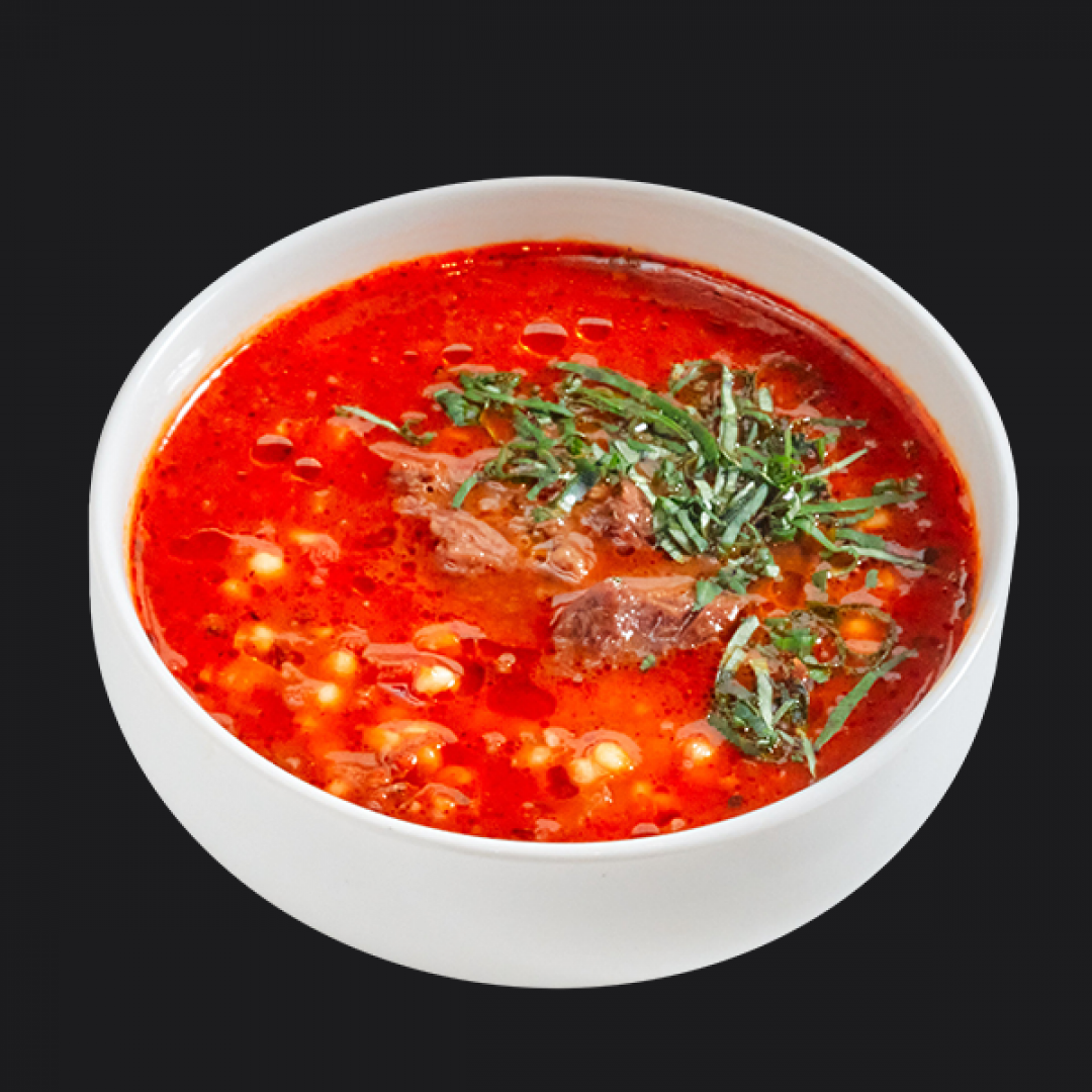 Птитим, томлёная говядина, лук, морковь, соус неаполитано, айвар, сельдерей, куриный бульон, чеснок, чили, специи